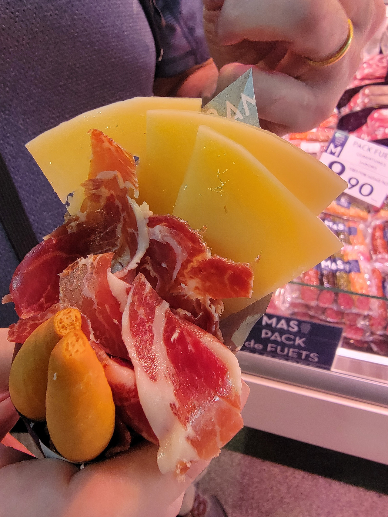 왜? 어째서?라고 물어보기 뭐해서 알려줘서 고맙다고 하고 이베리코 하몽과 치즈가 들은 군것질거리 하나를 그곳에서 샀다.