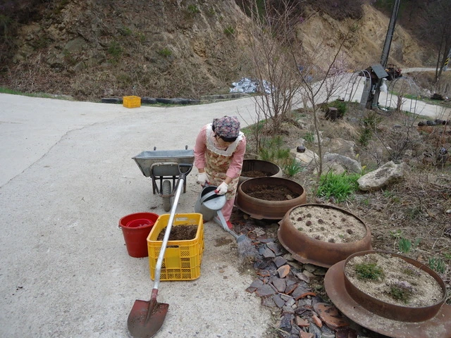 거기에 들어 앉을 꽃이 어떤 것이냐에 따라 마사토와의 비율을 등 흙의 성격도 고민했다.