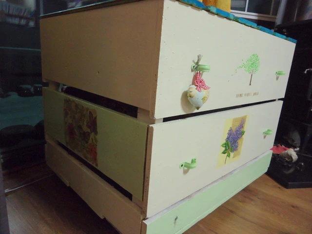 젯소칠, 페인트칠, 스텐실, 냅킨아트, 바니쉬로 마무리 순서지만 시간을 오래 뜸을 들였다.