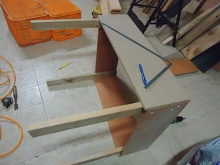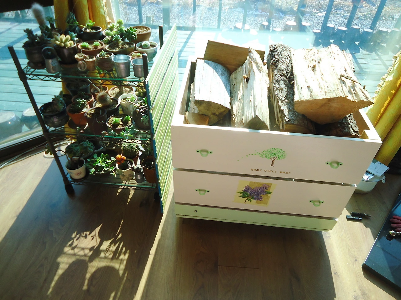 무거운 나무를 날라야 하므로 바닥에 바퀴를 달아 뒷베란다까지 가서 그 너머 나무 창고의 나무를 나르게 되었다.