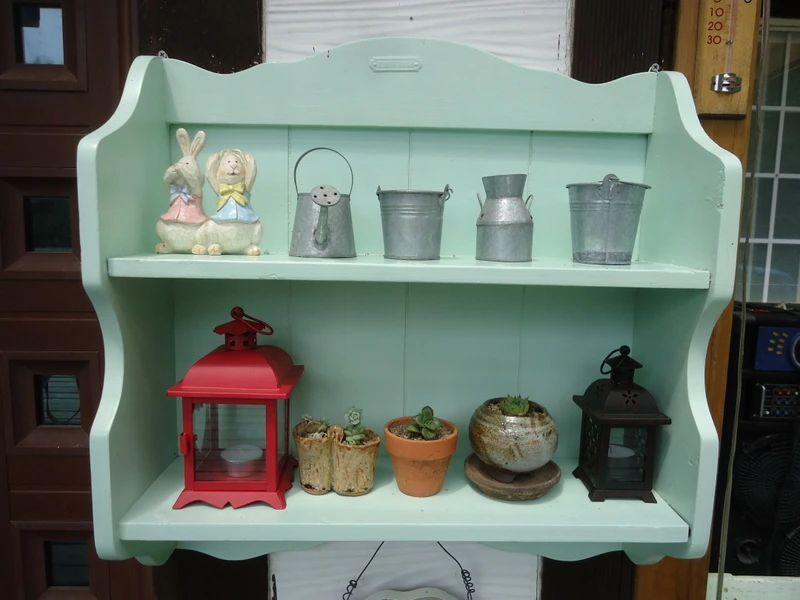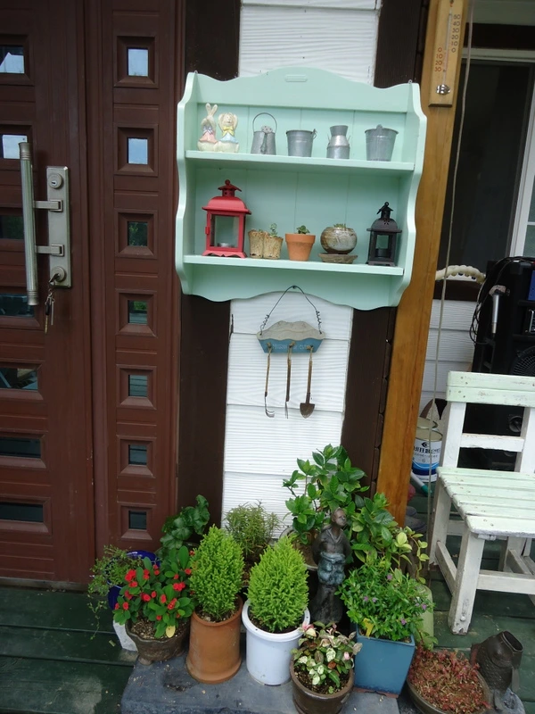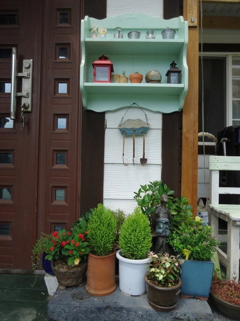 그리고 미니 화단 위에 선반을 걸고 주먹 반만 한 다육이 화분과 함석 소품들을 올렸다.