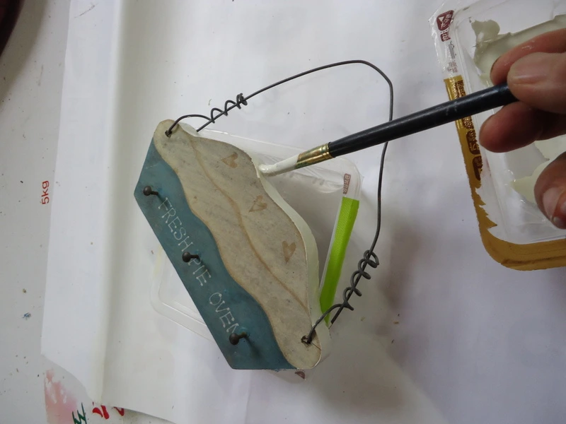젯소칠을 세 번 한 다음, 페인트 색을 조색했다.