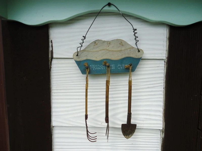 열쇠걸이로 쓰던 것에 정원 소품인 미니 삽, 삼지창, 갈고리 등을 걸어주었더니 화단의 이쁜 병풍이 되어 주었다.