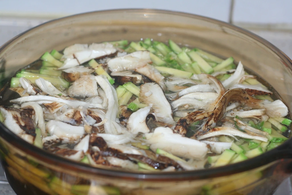 애호박은 채를 썰고 송이는 손으로 찢어 준비한다.