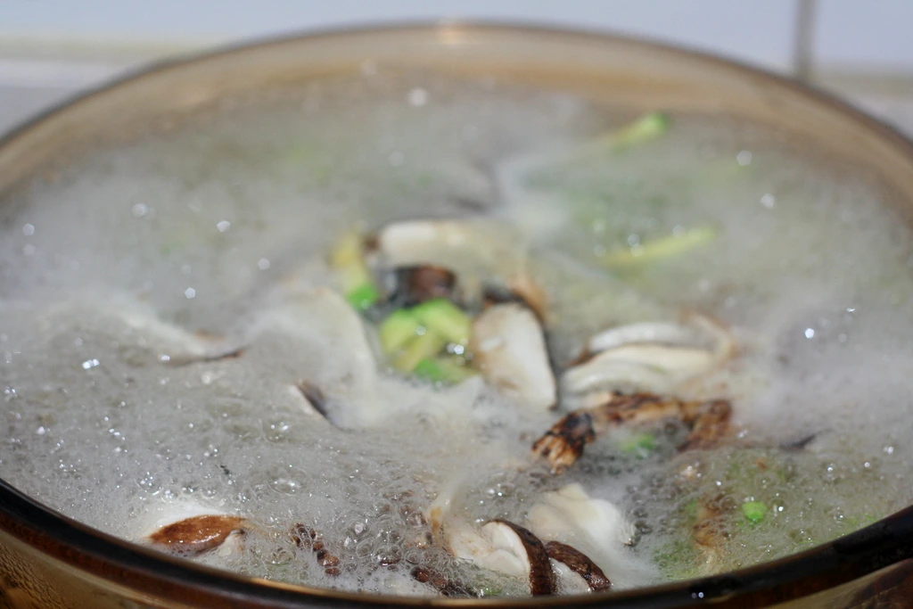 송이 국을 끓일 때는 그냥 맹물에 끓인다.
