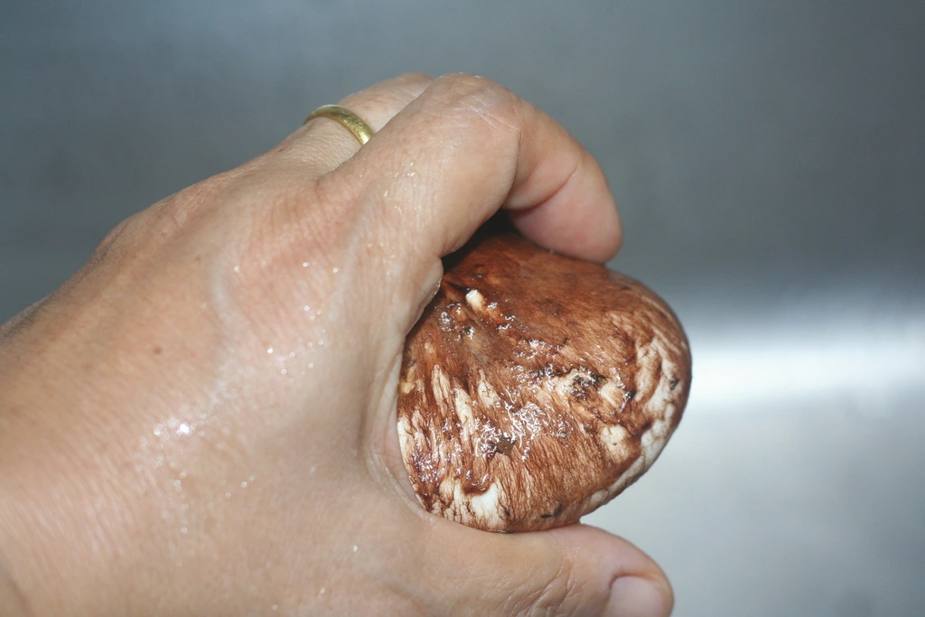 신생아 얼굴 닦아 주듯이 손에 물을 묻힌 다음 송이의 갓부터 닦는다.