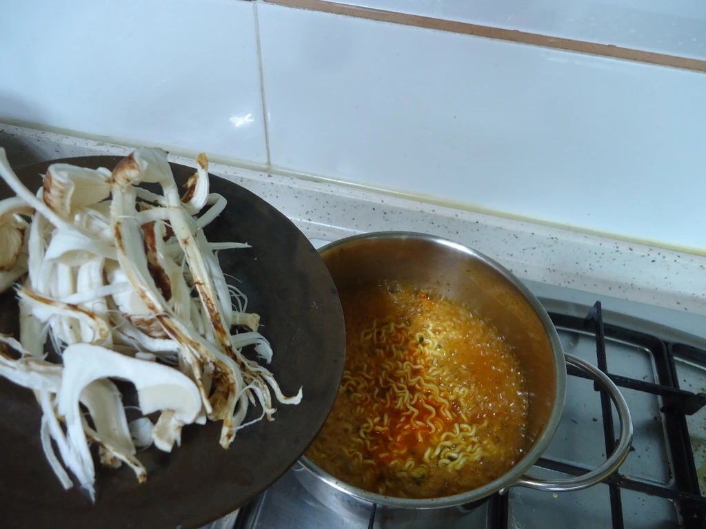 그러다 올해 송이가 풍년이 되니 송이값은 싸졌지만 풍족하게 먹을 수 있다는 생각에 라면을 끓였다.