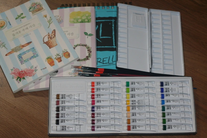 내친김에 용기를 내어 미술용 연필 한 자루와 수채화 물감과 파렛트, 붓 3개 그리고 작은 도화지와 초보용 책도 두 권 장만했다.