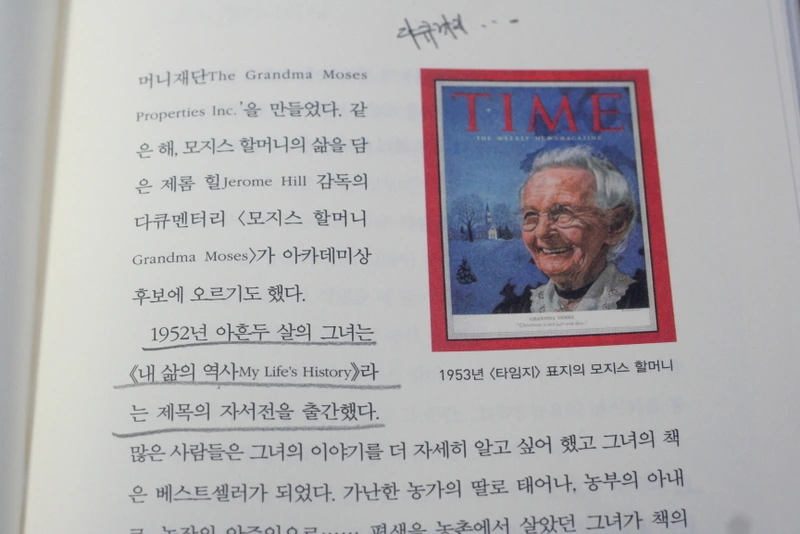 그 와중에 2000년에 아이들을 자연에서 키우기 위해 울진 산골로 귀농까지 하였으니 나의 꿈은 더욱더 낡아 빠져 기억조차 희미해진 시점에 모지스 할머니의 책을 만났다.
