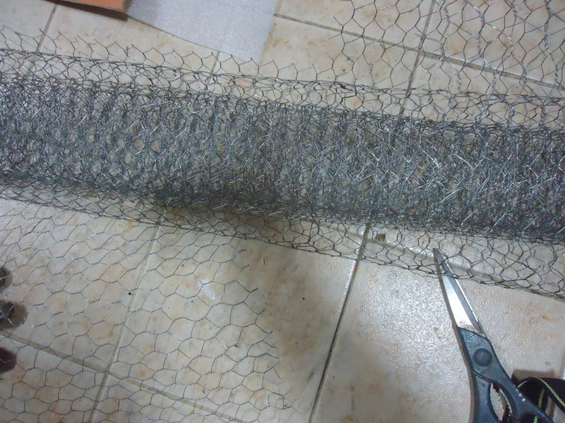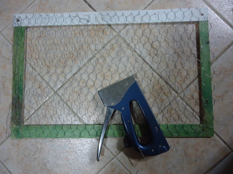 철망을 어렵사리 재단한 다음 책상 뒷면에 손 타카로 박았다.