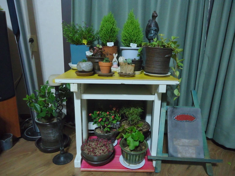 문제는 이 책상이 워낙 작아서 화분 서너 개 올리면 가득이라 나머지는 또 어쩔 것인지가 였다.