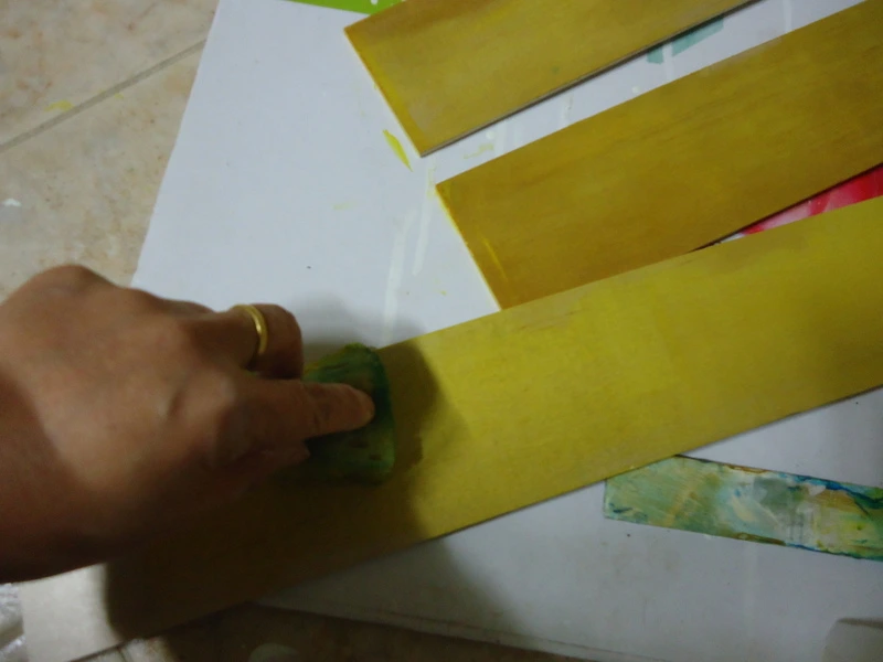 일일이 재단하여 원목용 스테인을 칠하기로 했다.