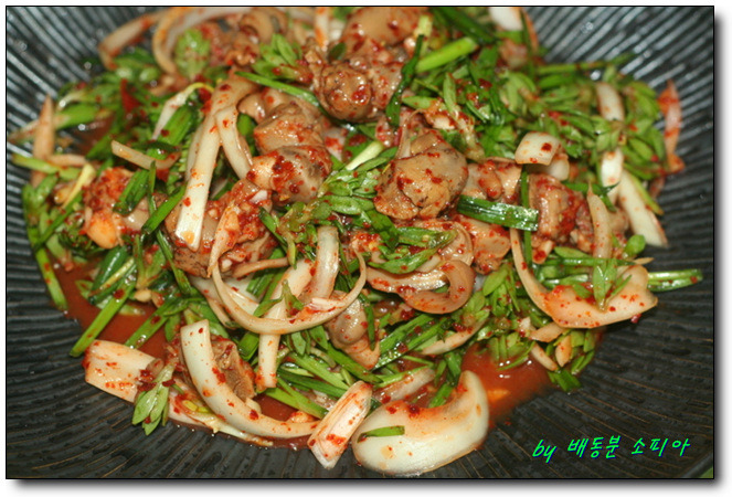 양파, 부추, 돌나물, 매운 고추 잘잘하게 썰어 준비를 준비한다.