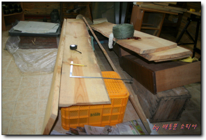 나무는 오래 전에 초보농사꾼이 나무를 제재소에 가서 두껍게 켜다 주었고 창고에서 오래 말렸다.