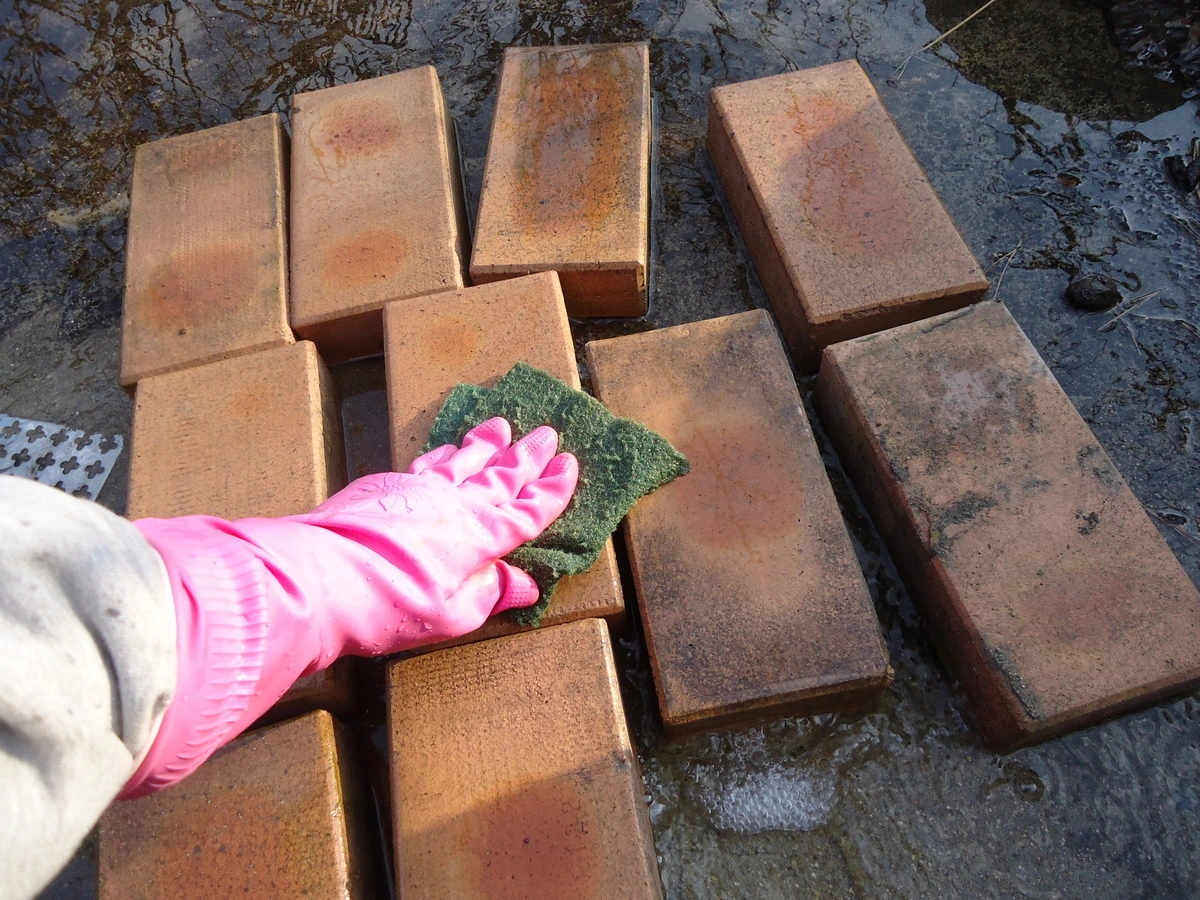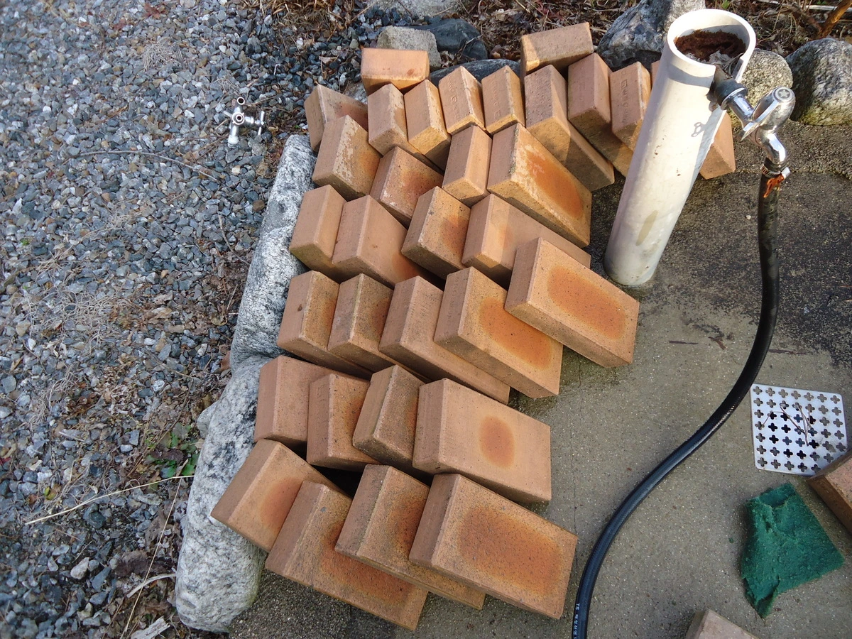 벽돌은 초보농사꾼이 재활용한다며 얻어온 것을 사용하기로 하고 수세미로 빡빡 문질러 닦았다.