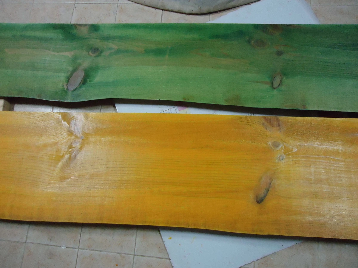 송판이 세 개가 필요했고, 두 개는 겨자색으로 칠하고 나머지 하나는 초록계열로 칠했다.