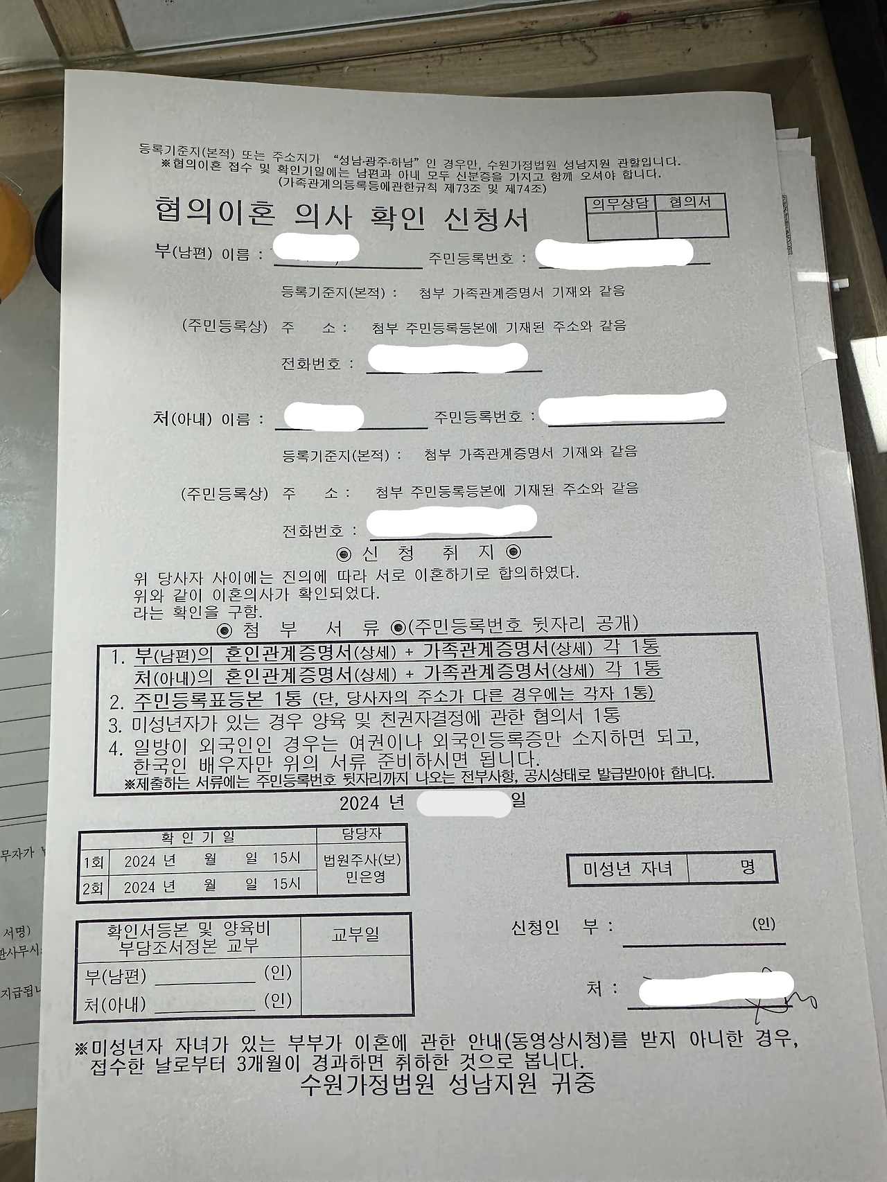 "이혼서류접수하려고요, 근데 무마 됐어요."
