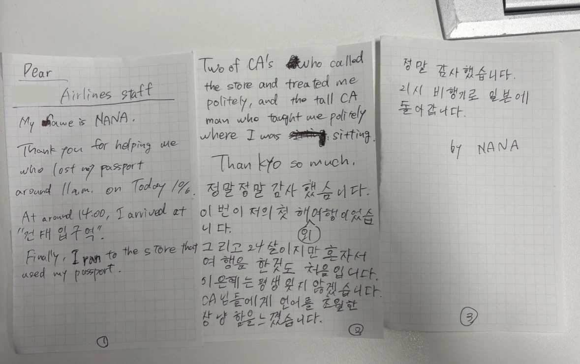 어떻게든 고마움을 전하려 번역기를 돌려 쪽지를 쓰고