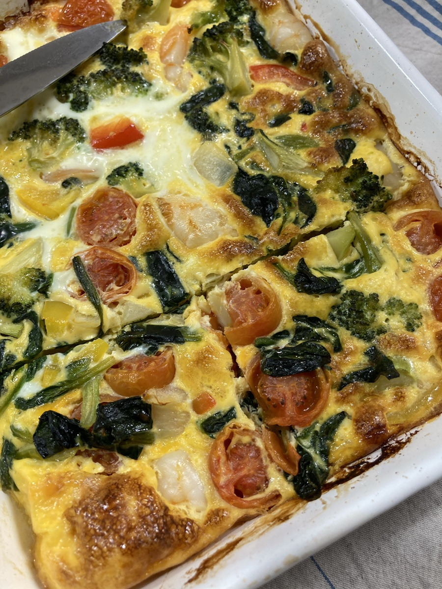 두번째, 요리가 알아서 완성되는 동안 다른 일을 할 수 있다. 아침식사로 시금치 프리타타를 준비했다. 파프리카, 양파, 시금치를 썰고 남은 부분, 새우와 소시지를 썬 도마와 칼, 재료들을 올리브유에 볶아내느라 사용한 프라이팬, 계란 서너개를 풀었던 볼이 놓여있다. 법랑 그릇에 온갖 재료를 담아 넣고, 200도에 15분을 돌려 놓는다. 그 다음 저 광경을 차근차근 치워낼 수 있다. 이걸 굳이 지금 치워야 하나 싶다면, 샤워하고 나와도 된다. 씻고 나오자마자 포크로 구석을 찔러 한 입 먹을 수도 있다. 약속때마다 늦던 친구가 웬일로 제 시간에 도착해 딱 만나는 듯한 기분이다.