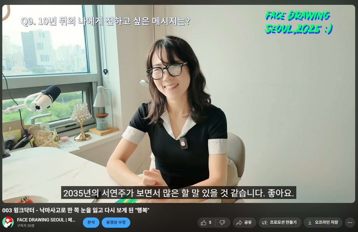 용기를 내어 안경을 벗고 카메라 앞에 서는 연주님이 나옵니다.
