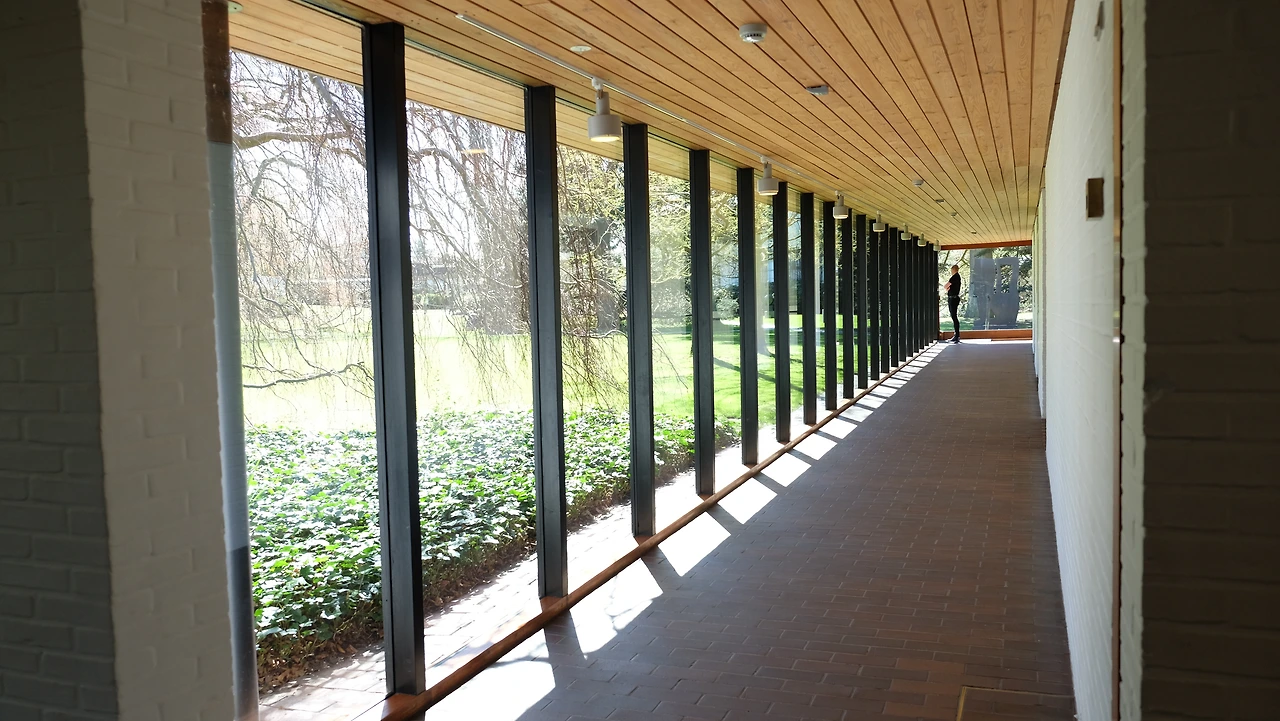루이지애나 미술관이 주변자연과 멋진 조화를 이루는것을 가장 잘 느낄 수 있는 장소는 3개의 단층짜리 유리로 만들어진 복도에요.