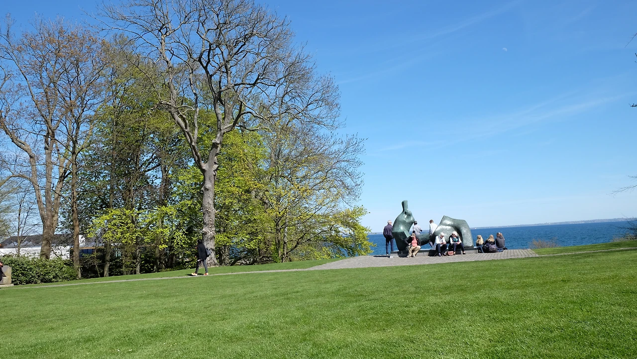 외레순 해협이 내려다 보이는 조각상에서 도란도란 앉아 이야기를 나누는 사람들도 보고 있자니 마음이 차분해 져요. 이곳에 있는 조각상은 영국을 대표하는 현대조각의 대부 헨리무어의 청동조각인데 햇빛을 받아 반짝거리며 정원을 더욱 아름답게 빛내줍니다.