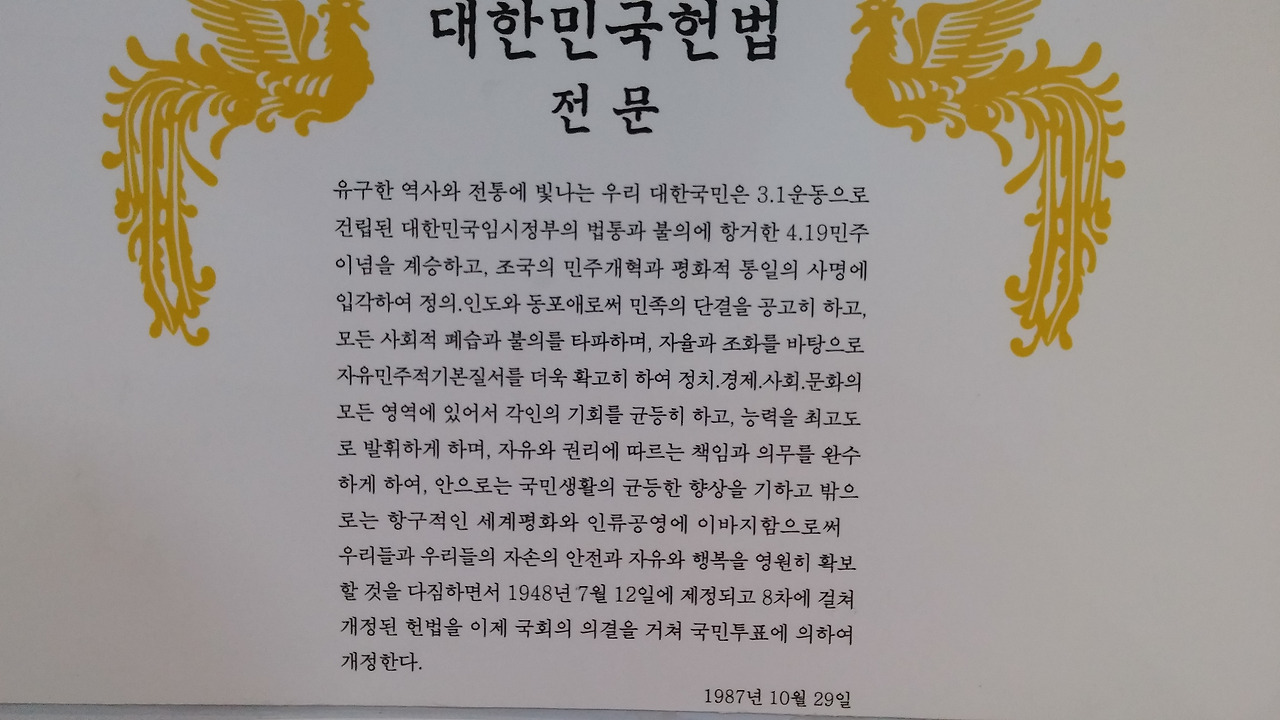 나의 눈길을 유독 끄는 것이 있었다. 그것은 대한민국 헌법 전문이었다.