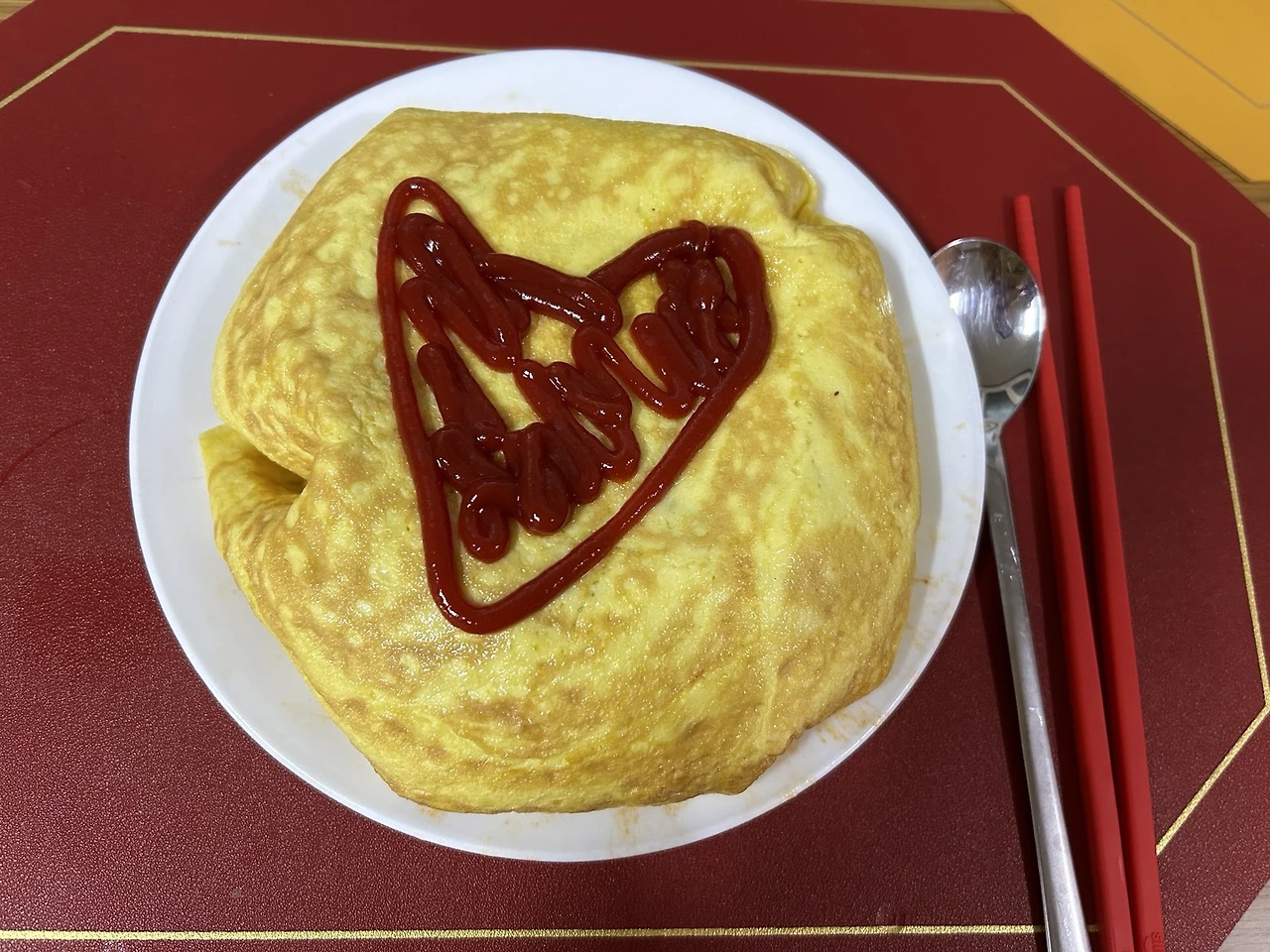 피보다 진한(?) 케첩으로 그린 하트가 확신의 사랑을 말하고 있었다.