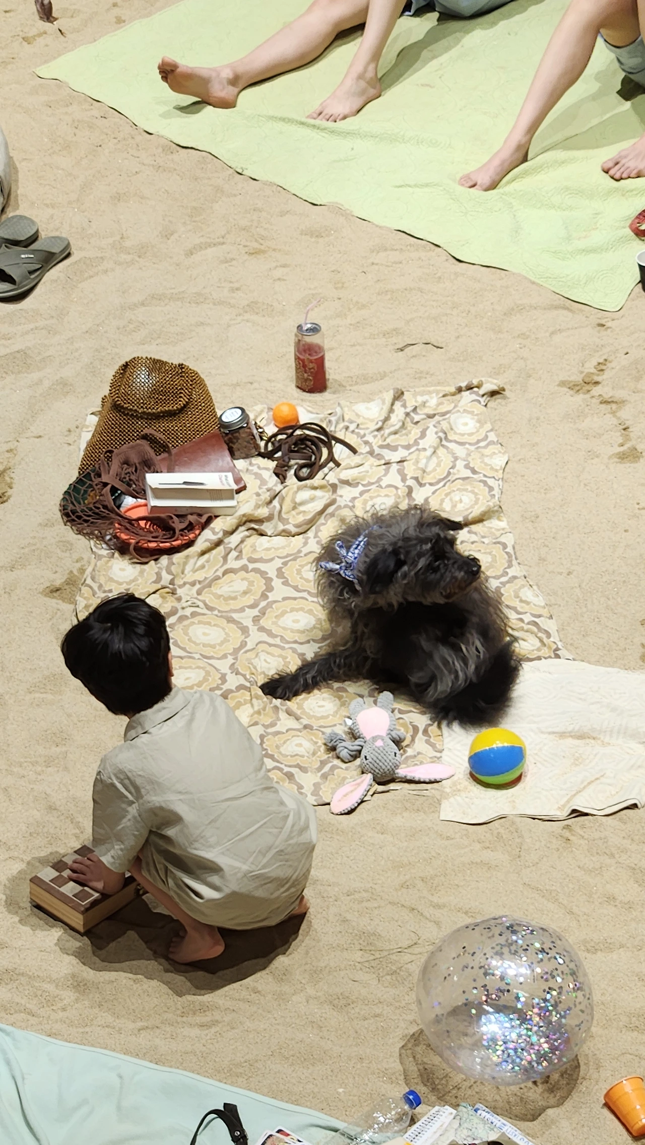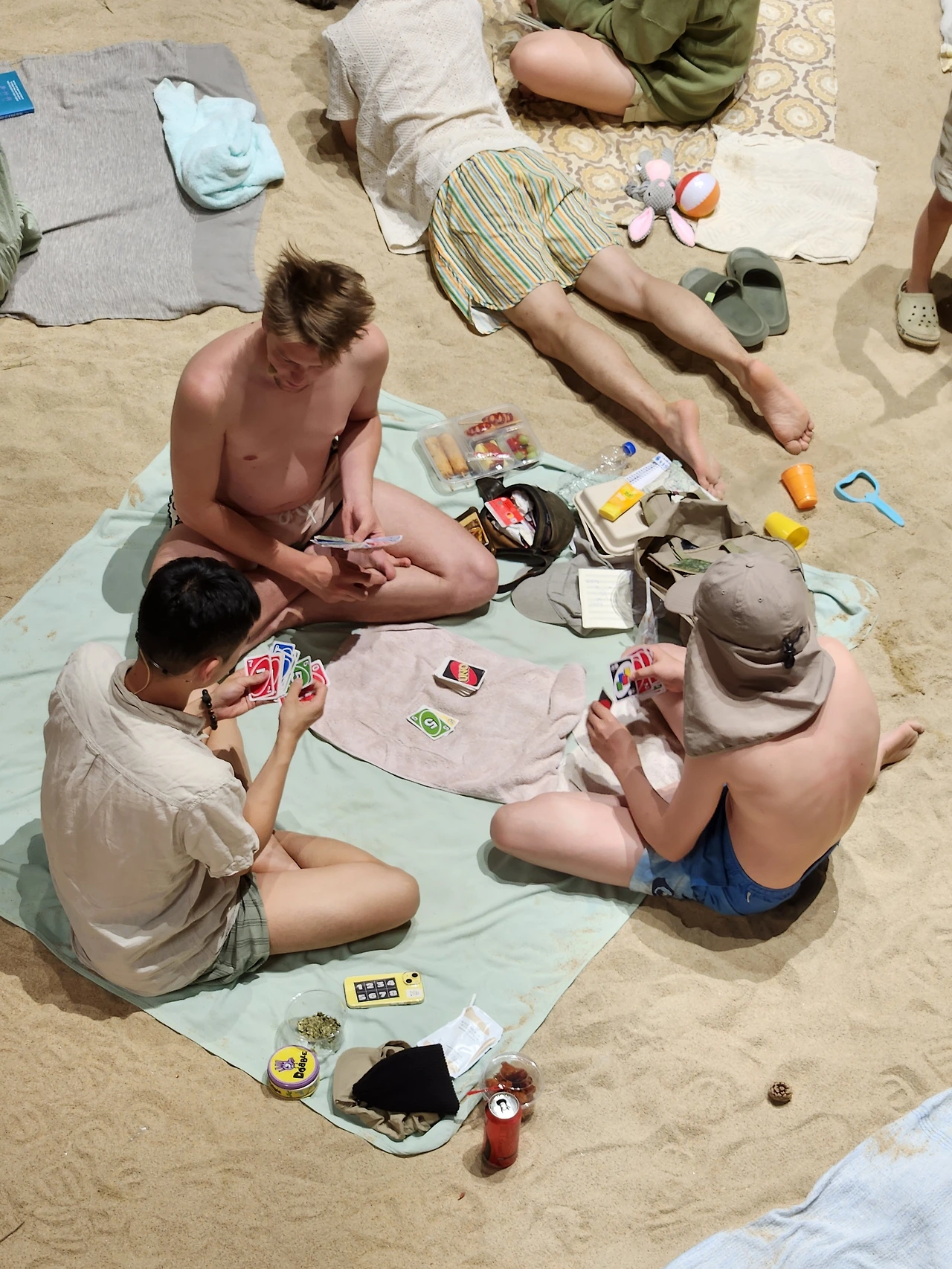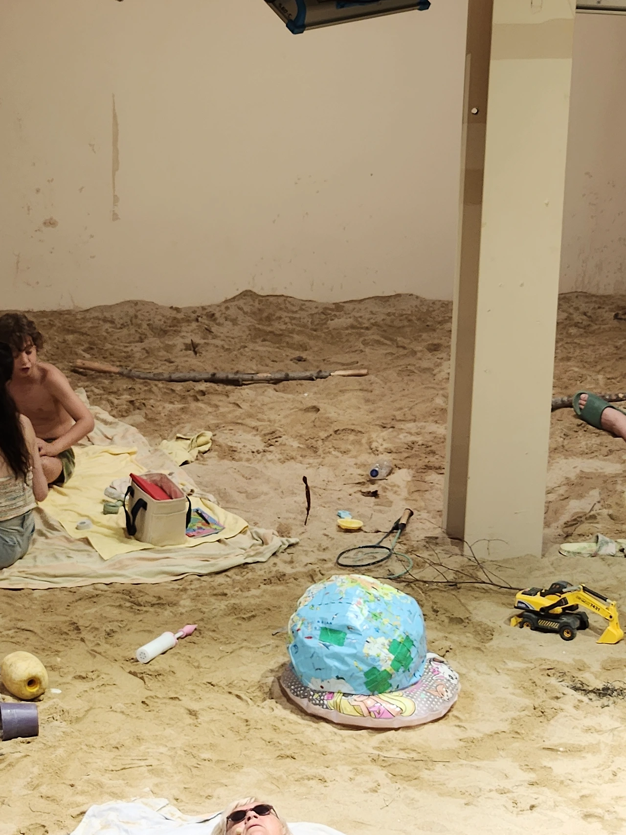 실제 수 톤에 이르는 모래를 깔아 조성된 실내 해변에서 사람들은 일광욕을 즐기고 책을 읽는다. 아이들은 모래놀이를 하고 강아지도 여름날을 즐기고 있다. 그러다 하나둘씩 자기 일상을 노래로 부르는데, 가사와 상황이 어쩐지 불편하고 위태롭다.