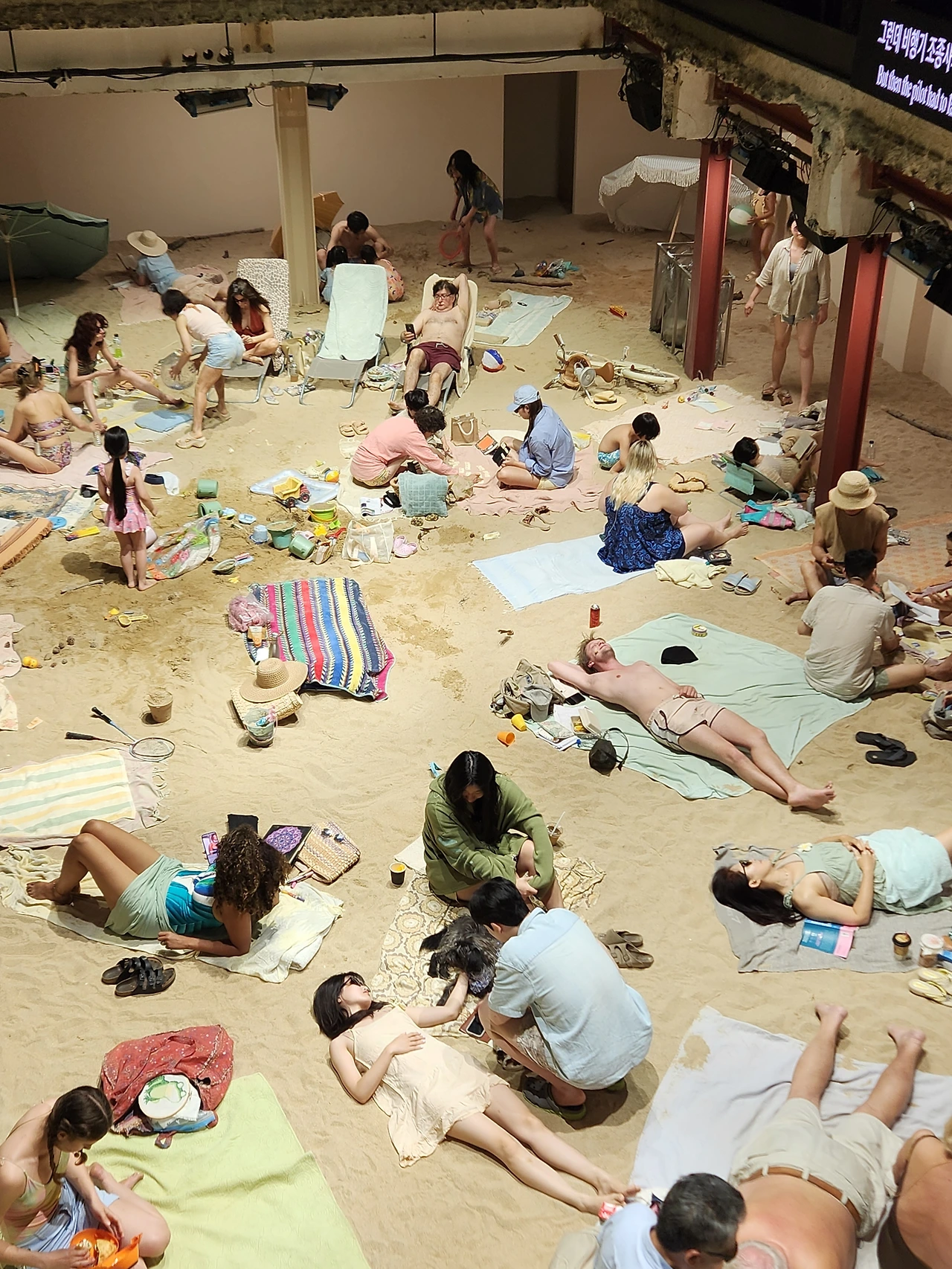 지난주 성수동의 어느 빈 건물에서는 휴양지의 해변이 펼쳐졌다. 2019년 베니스 비엔날레 황금사자상 수상작인 <태양과 바다(Sun & Sea)>였다.