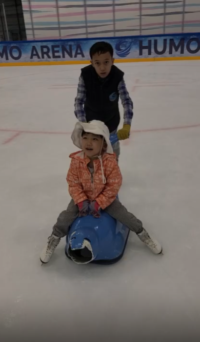 나는 역주행하는 주원이를 바로 세우는 동시에 선수들처럼 여자코치의 눈치를 보기 시작했다. 잠시 후 제빙시간이 가까워오자, 여자코치가 대기석에서 사라졌다. 비로소 바짝 긴장했던 선수들이 웃기 시작했다. 선수들은 방문객들이 아무렇게나 놓고 퇴장한 하얀 성인지지대와 펭귄지지대를 정리하고는, 후모 아레나에 유일하게 남은 방문객인 우리에게 다가왔다. 그중 초등학생 정도 되어 보이는 남자선수가 주원이를 물개지지대에 앉히고는 썰매를 태워주고 나에게 러시아어로 말을 걸었다. 말이 안 통하자 이번에는 고등학생 정도 되어 보이는 또 다른 여자선수가 다가와 나와 주원이를 번갈아서 보며 웃으며 러시아어로 말했다. 영어밖에 못 한다고 하자, 남자선수와 여자선수가 서로 토론을 하더니 토론 끝에 여자선수가 제스처로 빙판 밖으로 나가서 얘기하자고 했다.