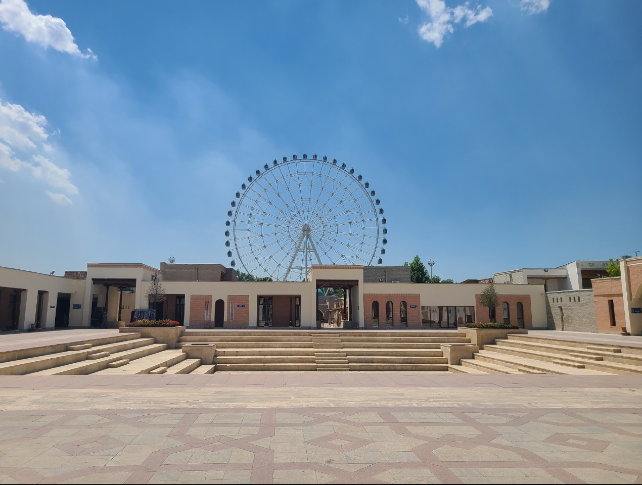 크고, 화려하고, 아름다운 이 공원은 매우 한적했다. 43도 한낮 땡볕에 열기가 그대로 올라오는 이 공원에 다니는 건 뭣도 모르는 외국인 관광객들 뿐이었다. 현지인들은 센스있게 태양이 사라진 저녁에 모두 이 공원으로 집결할 예정인 것 같았다. 타는 사람도 하나도 없는데도 끝없이 돌고 있는 72미터 대관람차에게 미안해질 지경이었다. 높은 건물이 거의 없는 타슈켄트에서 대관람차에 올라타니 나브로즈 공원의 전경이 눈에 들어왔다. 대관람차를 타고 다시 나브로즈 공원을 돌아볼 생각이었으나, 대관람차를 타고 전경을 보니 나브로즈 공원이 전체적으로 나무 그늘이 없었다. 2017년 막 착공한 공원이니 5살짜리 나무들이 그늘을 조성할 만큼 컸을 리 없었다. 양산을 써도 보도블록에서 복사열이 올라오는지 주원이의 머리카락이 땀으로 범벅되었다. 우리는 대관람차에서 나브로즈 공원에서의 후퇴를 결정했다.