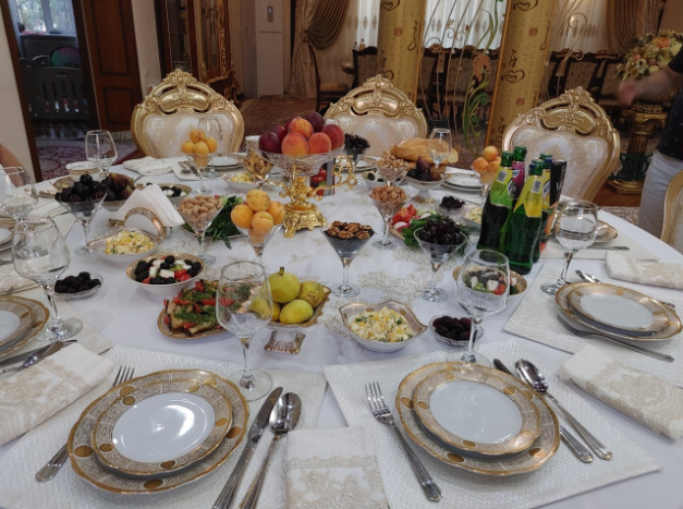 처음 만나는 아이비에커네 아버지에게 할 말이 무엇이 있겠는가. 그것도 이렇게 뻘쭘한 상황에서... 그러나 나는 회사 짬밥 13년, 아줌마 짬밥 9년 아닌가. 집주인을 행복하게 해 줄 수 있는 건 칭찬밖에는 없다. "정말 집이 멋지세요. 제가 티무르 황제네 집에 온 줄 알았어요."라는 말을 구글 번역기에 써서 러시아어로 번역한 화면을 아이비에커네 아버지에게 보여드리자, 아이비에커네 아버지가 만면의 미소를 지었다. 구글 번역기에서 이어 흘러나오는 기계음성 번역을 듣고 성제 오빠, 아이비에커, 바허도 모두 웃기 시작했다. 구글 번역기야말로 썰렁했던 테이블에 활력을 불어넣었다. "감사합니다. 사실 이 집은 제가 다 설계과정에 참여했어요. 이 집을 보려고, 타슈켄트 시장님도 방문하셨답니다." 사실 실용성보다는 외관을 중시한 집만 봐도 딱 알 수 있었다. 아이비에커네 아버지가 명분과 체면을 중시한다는 것을. 상대방이 자랑스러워하는 부분을 발견하고, 그것을 칭찬하는 전략이 통한 듯하였다. 그다음은 음식 솜씨에 대한 칭찬으로 이어졌다. 음식이 너무 맛있다고 하니, 아이비에커가 자기 와이프가 음식을 잘한다고 칭찬에 화답해 주었다.