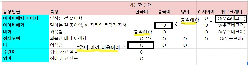 구글번역기를 고용하다. 내가 반드시 대화를 해야만 한다면, 아이비에커 아버지랑 단독으로 통역의 장벽 없이 이야기를 나누고 싶었다. 나는 우즈베크 유심이 있는 엄마의 핸드폰을 빌려, 아이비에커 아버지가 말씀하실 때 통역기를 가동했으나, 구글 통역기는 우즈베크어 음성지원을 하지 않았기 때문에, 아이비에커 아버지의 말을 직접 알아듣는 것은 어려웠다. 그나마 간단한 말은 성제 오빠가 한국어로 바로 통역해 주었다. 아이비에커 아버지의 말을 알아듣건 말건, 아이비에커 아버지가 말씀하실 때는 내가 진심으로 듣고 있다는 걸 알려주고 싶어 눈을 마주치고 고개를 끄덕 끄덕였다. 곤란한 나의 상황은 모른 채, 바허와 아이비에커는 이런 내 모습이 웃겼던지 중국어로 "오, 은주, 이제 감으로 우즈베크어를 알아듣기 시작한 거야?"라며 놀려댔다.