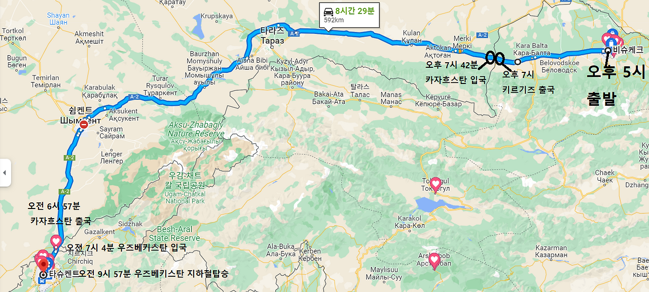 우리는 우즈베크 돈이 땡전 한 푼도 없었기 때문에, 버스가 다시 출발하기 전, 성제 오빠는 우즈베크 국경 한쪽 주차장 콘크리트 문턱에 걸터앉아 나에게 약간의 키르기스 돈을 받아 100을 곱해 환전을 해주었다. 우즈베크는 전체적으로 아주 깔끔했다. 길도 깨끗하고, 집도 깨끗하고, 길도 잘 정비되어 있었다. 타슈켄트는 고가도로부터 8차선 도로까지 대도시의 느낌을 팍팍 주었다. 성제오빠는 숙소가 우리랑 다른 지역에 있어 버스터미널에 가기 전 내렸다. 성제오빠는 그렇게 쿨하게 우리를 떠났다. 이제 성제 오빠랑 다른 숙소에 묵게 되면서, 중앙아시아에서 러시아어도 우즈베크어도 못하고 우즈베크 유심칩도 없는 우리 가족은 우리나라돈으로 약 5000원에 해당하는 우즈베크 현금만 들고, 완전히 성제오빠로부터 독립하게 되었다.