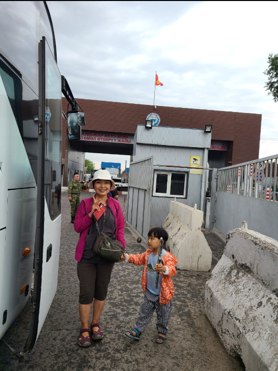 키르기스스탄 비쉬케크에서 우즈베키스탄 타슈켄트로, 그것도 버스로 가는 여정은 매우 복잡하다. 가장 빠른 루트가 카자흐스탄을 거쳐야 하기 때문이다. 여권에도 도장이 쾅쾅 4개나 찍힌다. 키르기스 출국, 카자흐 입국, 카자흐 출국, 우즈베크 입국, 그 각각의 절차를 어마어마한 줄을 통과해야 찍을 수 있다. 내가 가져온 모든 짐과 함께. 애써 버스에 실어놓았던 짐들을 모두 내려서 국경심사대 X레이 검사를 통과시키고 다시 버스에 실어야 한다. 작은 짐이건 큰 짐이건 다 내려야 한다. 대형 백팩, 내가 마셨던 물, 에코백, 아이와 엄마의 수면 목베개, 모자, 외투 등을 모두 내려서 버스를 텅텅 비워야 한다. 그리고 내린 짐은 내가 스스로 모두 짊어진 채로 국경을 걸어서 통과해야 한다. 게다가 우리는 유아차까지 있지 않은가?