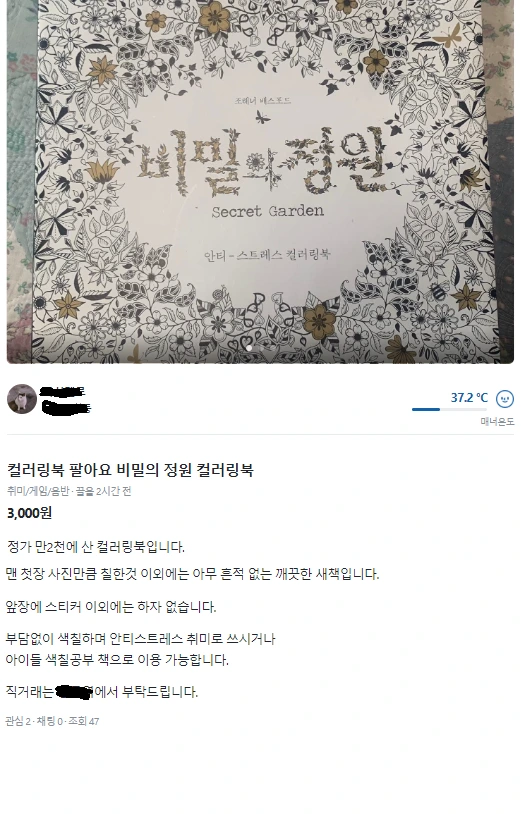 "몇 장만 칠했어요." 당근마켓에 내 놓인 컬러링북