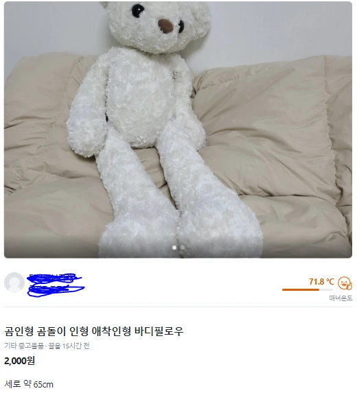 J와 보라가 각자의 길을 간지 벌써 10년이 흘렀다. 이제 사람들은 중고나라보다 당근나라, 아니 당근마켓에 더 친숙하다. 종종 커플링과 대형곰돌이가 같이 올라올 때면, 나는 다시 J와 보라의 사랑을 깨트린 곰인형을 떠올린다.