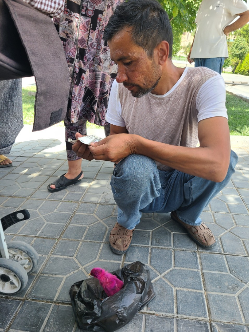주원이는 거대한 핫도그를 절반이나 먹고는 배부르다고 했다. "슈흐랏, 정말 맛있었어요. 고마워요. 이제 배불러요. 갈게요." "이제 아가씨 어디가요?" 나는 슈흐랏과 헤어지려고 슈흐랏이 절대 따라오지 않을 최대한 먼 곳을 말했다. "샤이진다 가요. 그럼 슈흐랏도 잘 가요." 그러자 슈흐랏이 당연하다는 듯 말했다. "알았어요." 그러고는 우리와 또 다시 같이 걷기 시작했다. 아무래도 헤어지자는 뜻을 못 알아챈 듯했다. 걷다 걷다 보면 슈흐랏이 제 풀에 떨어져 나가겠지. 우리는 왔던 길을 다시 걸어 샤이진다 방향으로 걷고 있었다. 시압바자르 앞을 지나가고 있을 때, 리어카를 끄는 어느 수레장수가 지나갔다. 배도 부르겠다 낮잠시간이라 유아차에서 잠잠하던 주원이가 갑자기 말했다. "엄마, 병아리에요. 저거 봐봐요. 병아리 귀여워요." 다시 보니 방금 지나갔던 수레장수의 리어카에는 무지개 색으로 염색한 병아리들이 잔뜩 들어있었다. 슈흐랏은 주원이의 반응을 보더니, 수레장수를 불러 세웠다. 나는 내가 할 수 있는 가장 큰 목소리로 외쳤다. "사지마세요. 우리는 필요 없어요. 우리는 오늘 기차 탈 거예요. 병아리 필요 없어요." 내가 했던 한국말이 너무 어려웠던 탓일까. 슈흐랏은 내가 싫다는 말을 모두 배제하고 기어코 빨간 병아리를 검은 봉지에 담아가지고 왔다. 이리 작은 생명에게 나는 어쩌다 이렇게 가혹한 운명을 주게 된 것일까. 내 앞에 놓인 병아리 앞에서 나는 순간 멍해졌다. 슈흐랏과 헤어지기도 실패하고, 배고프지 않다고 몇 번이나 말했는데 딱 봐도 불량식품인 핫도그도 애한테 먹이고, 이제는 병아리라니... 그나저나 이 가엾은 병아리는 어쩌지.