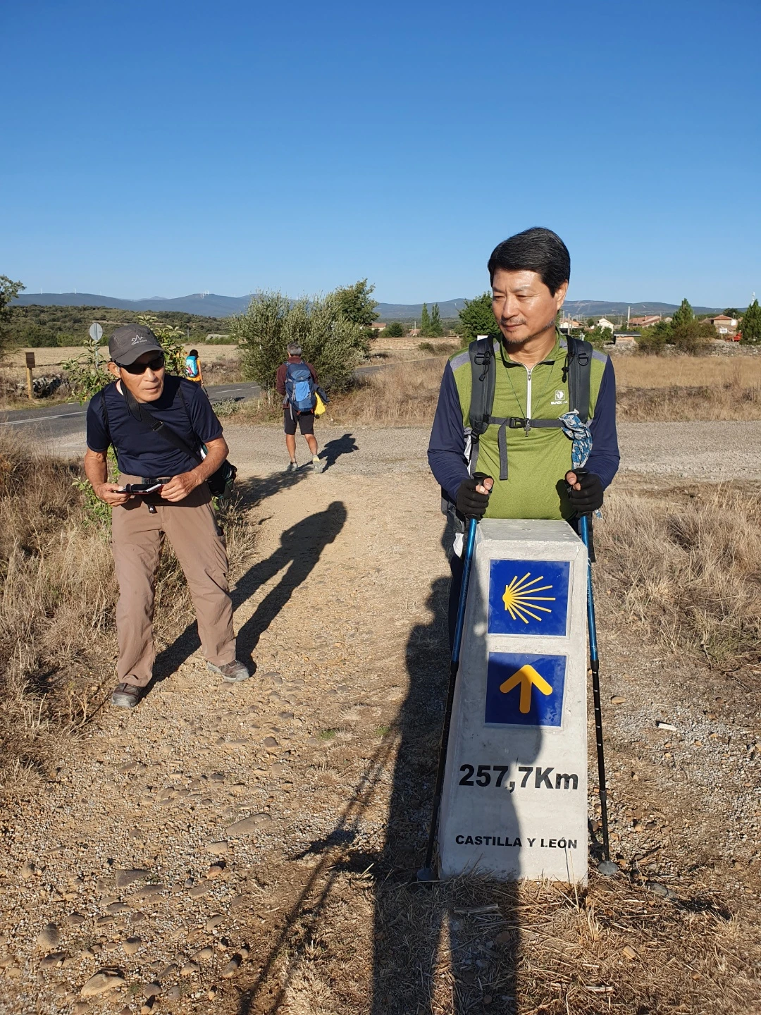 우리는 산티아고 257.7km 전 지점에서 사진을 찍었다. 어르신이 가시다가 돌아와 사진을 찍고 싶다고 하셨다. 사진을 찍고 나니 본인을 일본인이고 81세라고 소개했다. 말이 통하지 않아 더는 긴 대화는 나눌 수 없었다. 허리가 굽은 몸으로 걷고 계신 어르신에게 엄지를 치켜세우며 응원을 보냈다.