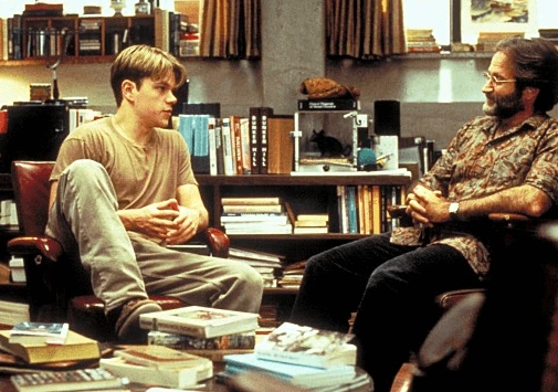 램보와 숀이 만나 윌을 걱정한다. 숀은 램보에게 윌을 너무 몰아붙이지 말라면서 참아 달라고 부탁한다. 둘은 싸움으로 이어지고 밖에서 윌이 듣고 있다. 들어오는 윌에게 숀은 오래전부터 이랬다며 네 잘못이 아니라고 했다. 그러면서 경험한 알코올 중독자의 숀의 아버지와 윌의 술 취한 아빠가 팰사람을 찾곤 했다가 오버랩된다. 윌은 여자 친구에게 버림받을까 봐 헤어졌다는 속마음을 숀 교수에게 말한다. 숀은 윌에게