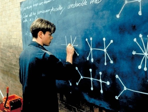 이영화는 1999년에 상영이 되었지만 1972년 이야기다. 고아인 윌이 양부의 매질과 학대로 배우지는 못했지만 천재성을 확인한 대학 MIT 두 교수가 그를 이끌어 가는 과정의 내용이다. 굿 윌 헌팅(맷 데이먼)은 21살로 MIT 공대에서 청소하는 청소부이다. 그는 한 번도 정상적인 교육을 받아본 적이 없다. 그런데 수학과 과학, 역사학에 있어 천재성을 드러낸다. 그는 친구들과 어울려 술 마시고 멋대로 행동하며 반항적 기질이 다분하다. 제랄드 램보(스텔란 스카스가드) 교수는 수학에서 노벨상과 비슷한 상을 받은 유명한 교수이다. 그는 학기 졸업을 앞두고 수업을 듣는 수강생들에게 말한다. 복도 칠판에 문제를 푸는 학생을 수제자로 키워 주겠다고 제안한다. 그런데 수강생이 문제를 푼 게 아니라 청소하던 윌이 단번에 풀고 만다. 램보 교수가 누가 풀었는지 물어보지만 아무도 대답이 없다.