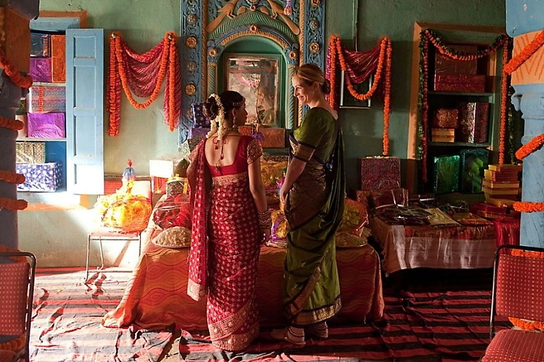 4개월 정도 이탈리아에 머물던 리즈는 다음 여행지 인도를 간다. 시끄러운 경적과 사람들이 무질서하다. 그들과 어울리며 박수를 치고 기도한다. 그곳에서 침묵 수행 세바(봉사)를 하기도 한다. 봉사로 알게 된 17살 툴시가 집중하며 기도하는 모습을 보며 제대로 되지 않는 자신을 돌아본다. 그리고 툴시의 결혼을 통해 인도의 전통혼례를 체험한다. 옷차림도 화려하고 많은 사람들이 함께 춤을 추며 축하해 준다. 리즈는 스티븐과 결혼했던 당시를 회상해 보며 사랑하고 행복했던 모습을 떠올린다.