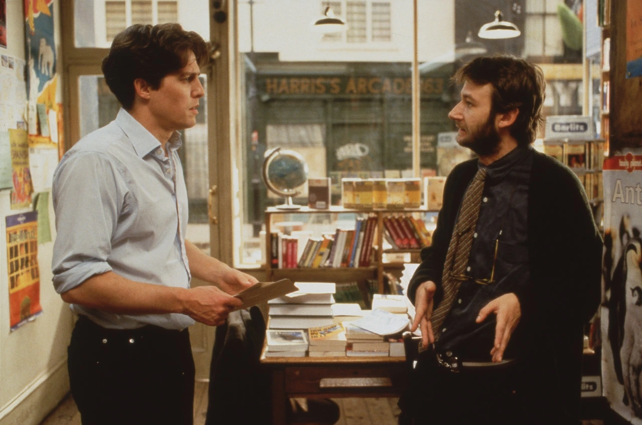 영화의 주인공 윌리엄 태커(휴 그랜드)는 영국 런던 노팅힐에 산다. 그는 노팅힐에서 작은 사점을 운영하고 있다. 태커는 이혼하고 괴짜 스파이크와 동거하고 있다. 영화에서도 촬영차 왔던 미국 여배우 애너 스콧( 쥴리아 로버츠)이 책을 사러 그가 운영하는 서점에 들른다. 서점은 별로 잘되지 않아서 적자를 메우기가 쉽지 않고 지난달에도 마이너스다. 계산을 하고 나갔던 스콧이 다시 들어왔다. 직원 마틴의 오렌지 주스를 사러 나갔다가 스콧과 부딪치는 바람에 흰 티에 쏟게 된다. 태커는 스콧을 자신의 집에 가서 오렌지 주스 묻은 옷을 갈아입으라고 데려간다. 그러나 스콧은 태커가 묻는 질문에 모두 아뇨!라고 대답하며 나갔다. 다시 돌아온 스콧이 태커에게 키스를 하고 그는 마음에 간직한다. 유명한 미국 배우와 영국 노팅힐에서 서점을 운영하는 두 사람 사이는 앞으로 어떻게 전개될까?
