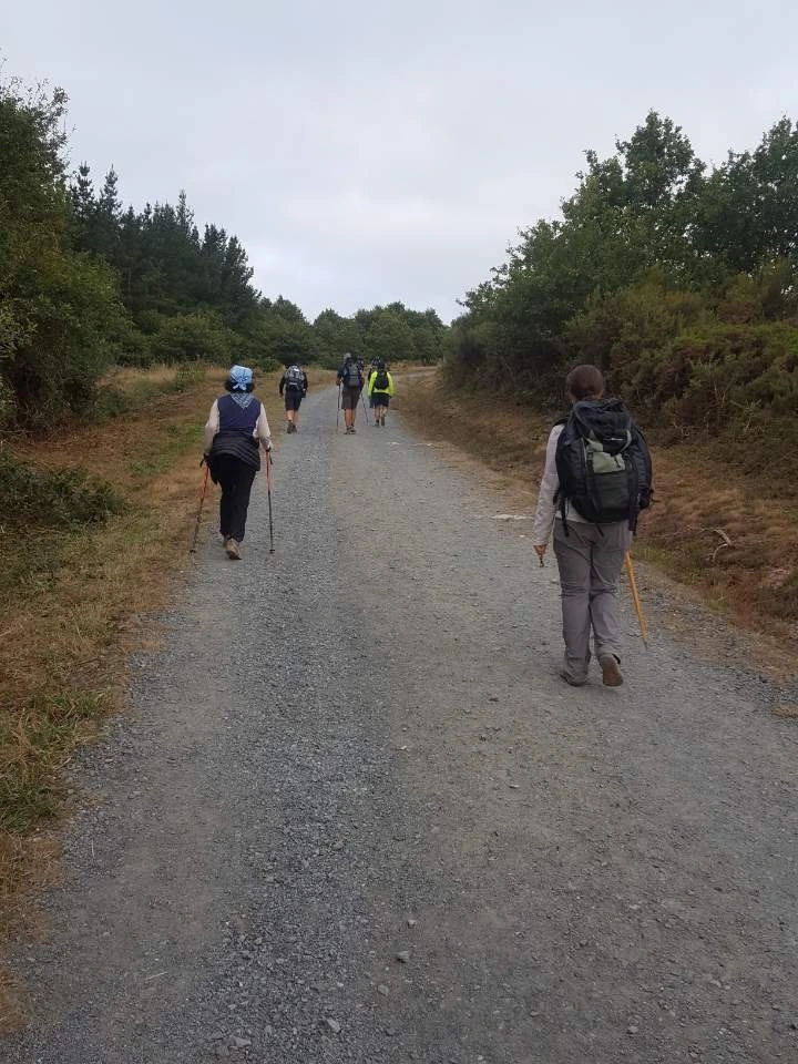 여러 나라에서 온 사람들이 사용하는 언어가 다르고 자라온 환경들이 달라도 까미노 길 위에서는 모두 하나라는 생각이 든다. 말이 유창하지 않아도 “올라” “부엔 까미노” “그라시아스” 세 단어와 밝은 표정만 있으면 다 통한다. 언덕을 올라오니 바람이 심하게 분다. '먹구름이 있는 걸 보니 비가 오려나?' 날씨는 쌀랑해서 경량 패딩을 입고 걸으면 덥고 벗으면 춥다. 벗었다 입었다는 반복하는 사이 숲길로 들어섰다.