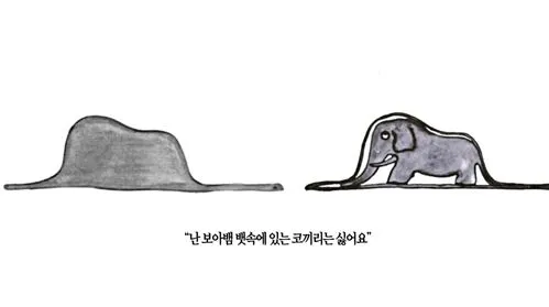 이 책에 그림이 여러 장 등장하는 데 그림은 모두 생텍쥐페리 자신이 직접 그린 거라고 한다. 그는 여섯 살 적에 '보아 구렁이 그림책'을 보게 되었다. 책 내용을 보고 그는 그림 1호를 그렸다. 그건 구렁이가 코끼리를 잡아먹는 그림이었다. 그런데 모자라는 답변을 들을 뿐이었다. 그래서 보아 뱀의 속이 들여다 보이는 그림을 그려서 보여 주었지만 야단만 맞았다. 어른들이 집어치우고 공부에 관심을 갖으라고 충고해서 그림을 포기해 버렸다. 그래서 성장 후 비행기 조종사가 되었다. 총명해 보이는 어른을 만날을 때 1호 그림을 갖고 시험해 본다. 그러면 그림을 '모자'라고 하는 사람에게는 보아 구렁이도 별들도 이야기하지 않았다. 보이지 않는 것을 상상할 수 있는 아이들만이 뱀의 뱃속을 보여주지 않아도 보아 뱀의 뱃속에 있는 코끼리를 볼 수 있다.