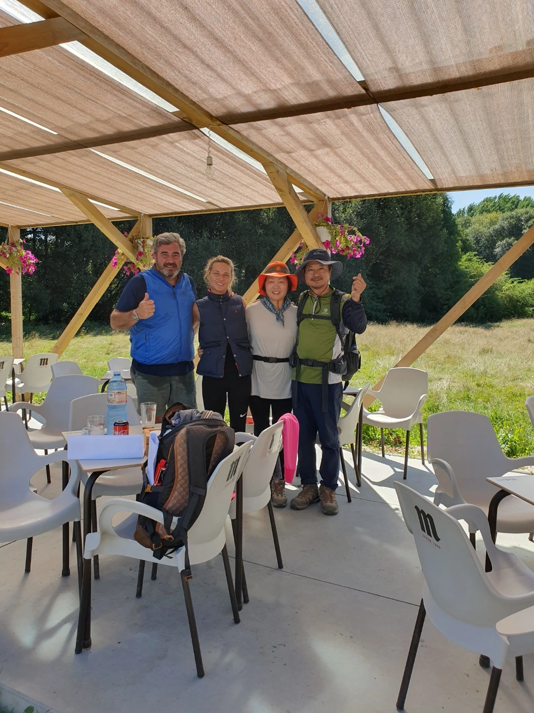 한국분에게 연세를 여쭈어보니 73세라고 하셨다. “프랑 길을 걷는 것이 이번이 세 번째예요, 7년 전에 다녀가고 작년에도 걸었지, 그런데 올해는 너무 힘들고 컨디션도 별로 안 좋아요. 난 매일 길 위에서 새벽 6시부터 저녁 6시까지 12시간을 걷고 있다오.” 정말로 대단하신 체력이다. 오다가 바에서 한 번 더 뵈었다. 우리 부부를 보고 “ 앞으로 살아가면서 대단한 은총이 함께 할 거예요.” 하고 격려의 말씀을 해 주셔서 기분이 좋았다.