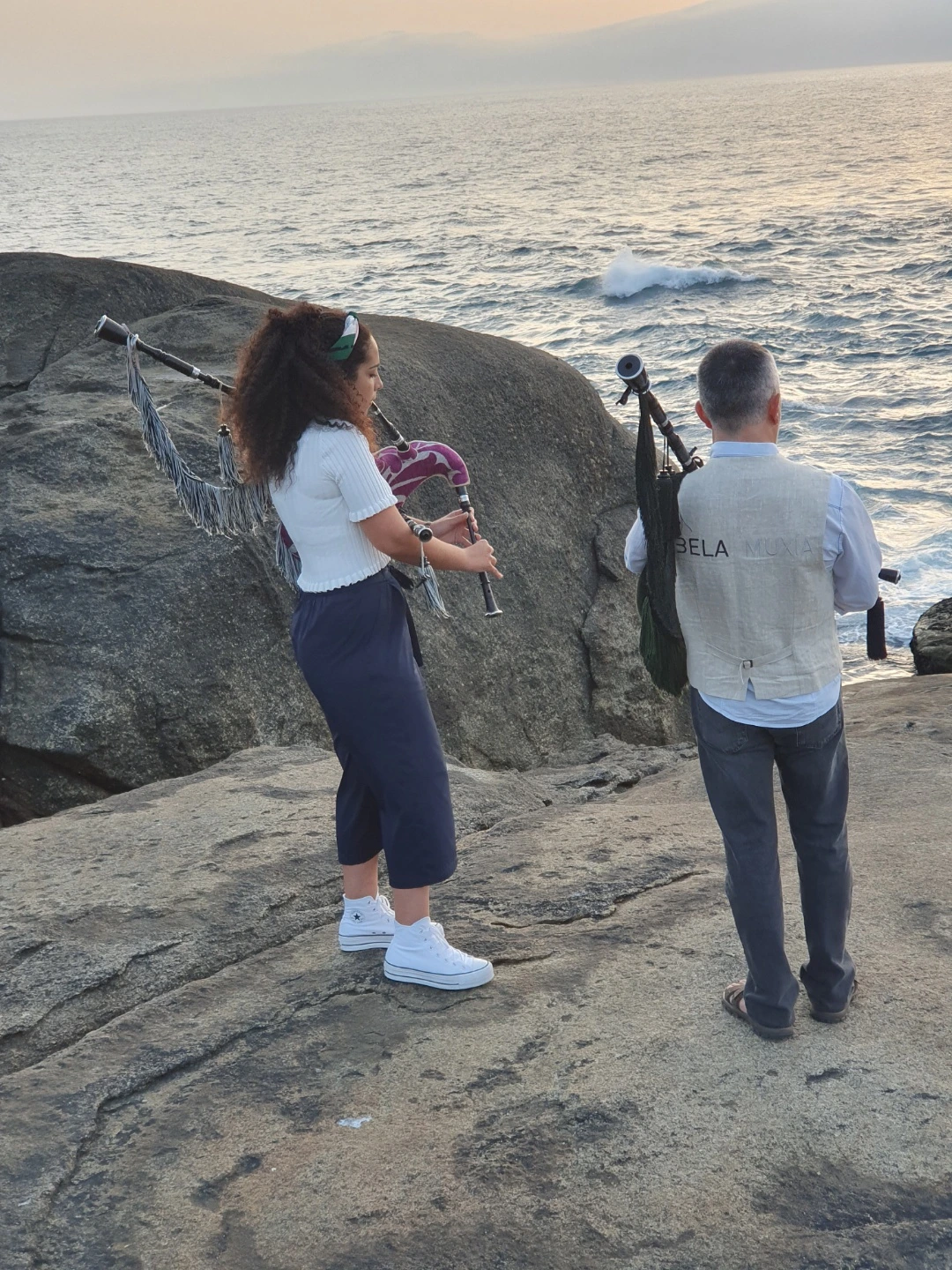 그런데 우리의 바람과는 달리 오늘은 먹구름이 있어 아름다운 석양을 보기는 힘들 것 같다. 아쉬움을 뒤로하고 바닷가 근처 성당에 갔더니 문이 닫혀 있어서 섭섭했다. 이곳이 성모님이 발현한 곳이라고 들었다. 가까이 0km 미터가 있어 사진을 찍고 아까부터 연주 하하는 부부가 있어 그곳 가까이 내려갔다. 오늘 석양이 있었더라면 연주를 하는 모습이 더 분위기 있고 아름다웠을 텐데 아쉽다. 하지만 오늘 이 멋진 연주회를 들을 수 있어서 행복하다. 팬플릇 비슷한 전통 악기 소리에 감동적이고 사랑이 충만해짐을 느낀다.
