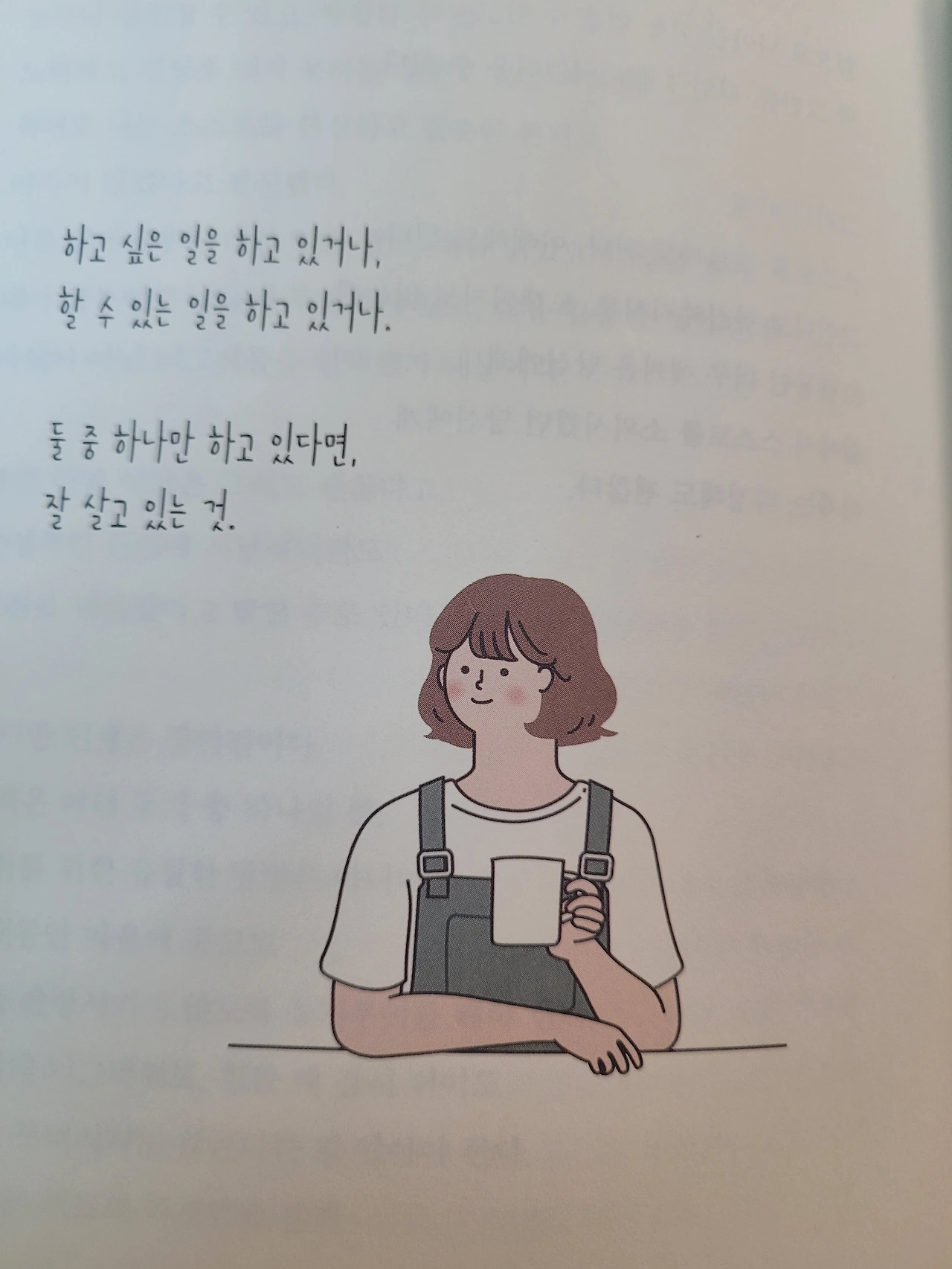 책 제목처럼 저자가 그린 그림과 세로의 제목이 애쓰지 않으면서 편안하게 보였다. 이 책은 2020년 5월에 발행하여 일 년이 지난 2021년에 36쇄를 발행했다. 총 6장으로 56편의 꼭지로 구성되었다. 시간이 될 때마다 아무 때나 어느 장소에서 읽어도 부담 없이 편안하게 읽히기 좋은 책이다.