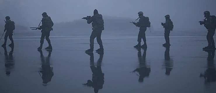 끝없이 얼음바다가 펼쳐져 있다. 빙판 밑에서 소리가 들리는데 마치 사람이 있는 것 같다. 앞으로 쭉 가다가 튀어나온 곳에 걸려 넘어진다. 그곳엔 사람 시체들이 얼어붙어서 마치 툭툭 불거진 것처럼 보인다. 머리만 내밀거나 손을 내밀거나 웅크리거나 다양한 모습들이 얼음에 꽁꽁 얼어 있다. 이때 음악은 장엄하다 못해 슬프고 아련하다. 그들을 바라보는 모습들이 처연하다. 혹시나 해서 이곳저곳을 둘러보는 에드에게 적들에게 노출될 위험이 있으니 전등을 끄라고 한다. 구명정이 전복되어 빠졌고 그곳에 얼음이 되어 묻힌 것이다. 그들이 잠시 쉬고 있을 때 불빛 때문에 정찰대 헬리콥터가 왔다. 까딱하면 모두 잡힐 뻔했다. 당분간 빙판은 위험해 도보로 가기로 한다. 길가 폐가에서 잠시 휴식을 취하기 위해 들어갔다가 두 노인 집에 잠시 머문다. 섬 이름은 아르 홀멘이라고 한다. 농담도 하면서 편한 시간을 보낼 때 커피가 쏟아져 밑을 보는 순간 총을 발견한다. 깜짝 놀란 에드가 노인의 눈빛을 바라보자 위장한 적이었던 노부부와 한판의 전투가 벌어졌다. 식탁 아래 숨겨진 기관총 공격으로 결혼을 앞둔 대원 카리미가 죽게 된다.